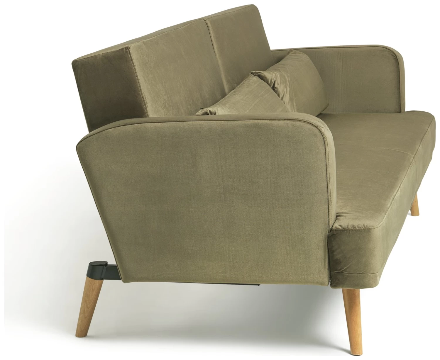 Clic clac, lie me flat. From designer sofa to overnight double bed in seconds. Amazing. Upholstered in flame sage velvet, I am also a contemporary sofa to yearn for. With a soft but firm foam fibre-wrapped seat and 2 gorgeous foam filled bolster cushions, you'll definitely be sitting comfortably. Spread out and sprawl, put your feet up, click the remote on, and let's try a night in together.