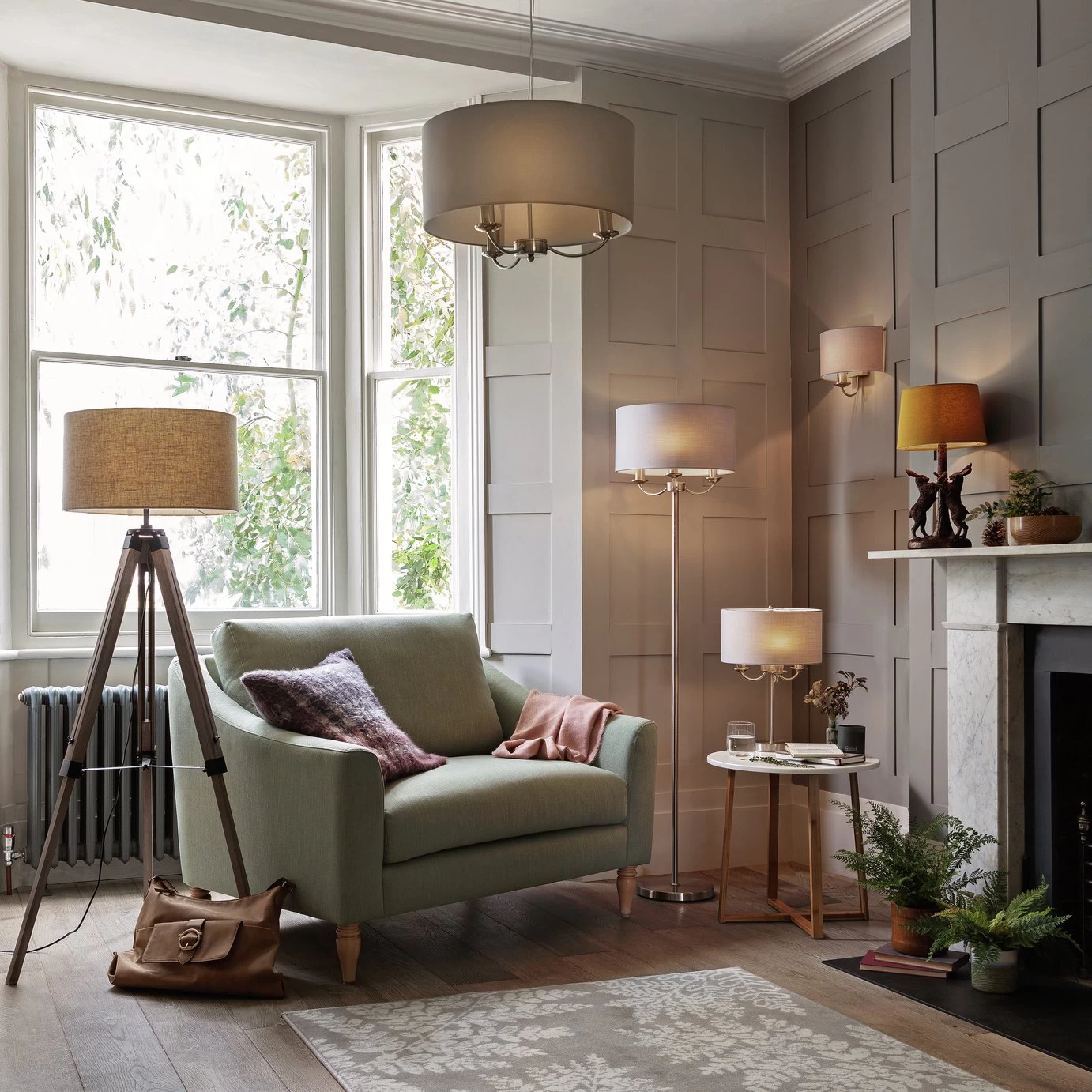 Looking for something a little different for your home? Then the Highland Lodge tripod floor lamp could be just the thing. With its iconic tripod design, it blends antique styling with a modern wooden finish and simple design. The oatmeal coloured drum shade creates a diffused and neutral lighting effect, perfect for a lounge or dining room. And the legs are adjustable too so you can select the height you want. Explore the rest of the Highland Lodge lighting collection for matching items.