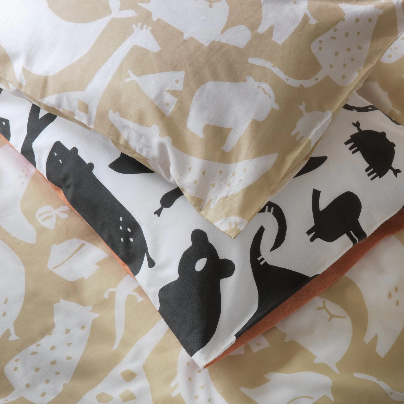 Take a safari from under the sheets. Kids will love spotting the elephants, bears, fish and birds on our cute twin pack bedding set. Featuring a bold design with cut out creatures in two popular colourways, these duvet sets bring a touch of the wild to the bedroom. Lightweight and soft in 100% cotton, this is linen that offers great jungle-themed fun. Sleep tight, little animals.