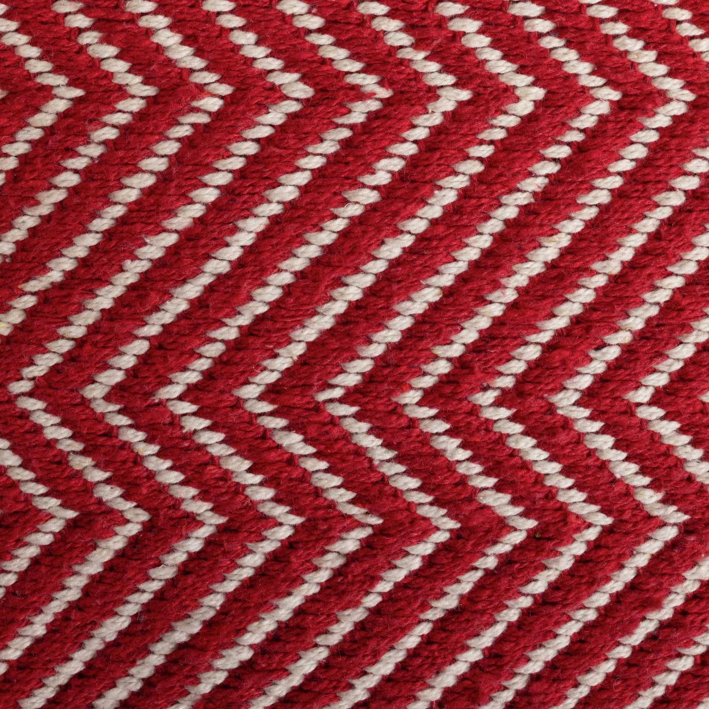 Beautifully textured, this Durrie cosy, natural woven cotton footstool is perfect for lounging. Put up your feet and kickback. Got friends over, then you've got a perfect extra perch at the ready. An inspired and multifunctional choice for any home. With a repeating zig zag pattern in the red and white 100% cotton weave, our pouffe has a truly artisan feel.