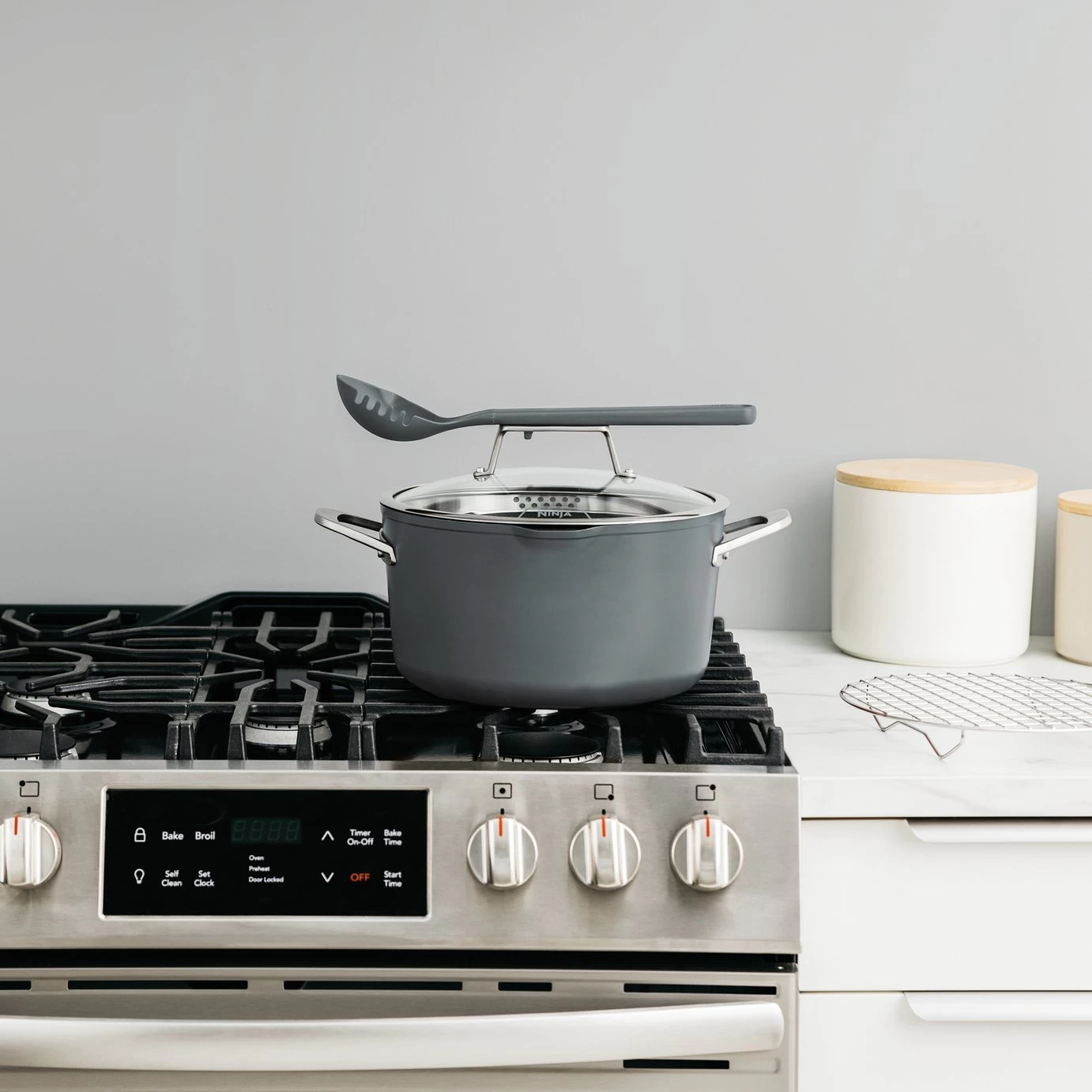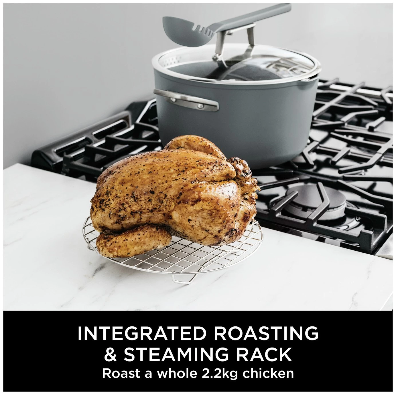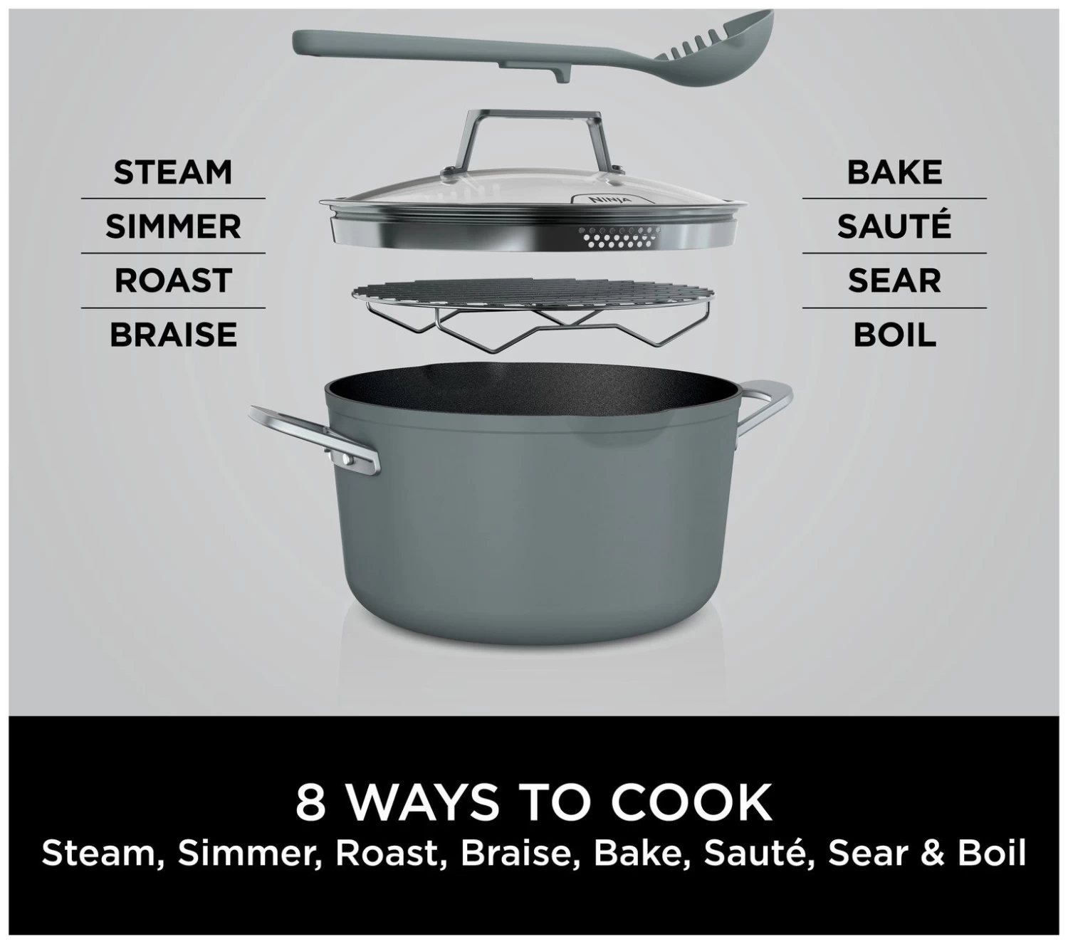 Everything you need to make it possible. Discover 8 ways to cook in one pot – Steam, Simmer, Roast, Braise, Bake, Saute, Sear and Boil your way to hearty roasts, one-pot meals, home-baked treats and more. Replacing 5 pieces of cookware, use it as a stock pot, saucepan, roasting pan, baking dish and steamer. The space-saving design features an integrated roasting/steaming rack and a multifunctional utensil stored in the heat-tempered glass lid. Go from hob to oven to table: it's oven safe up to 260C and suitable for all hob types.